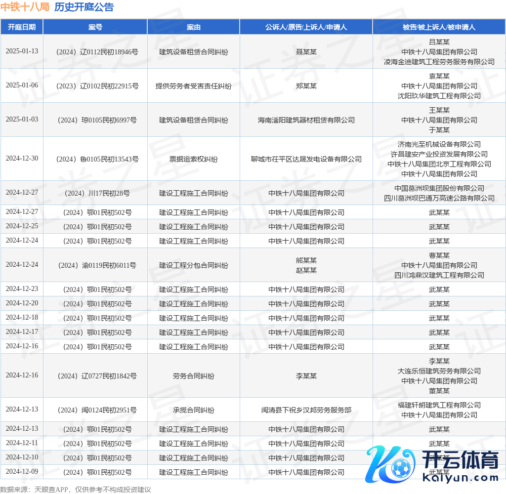 本站音书,凭证天眼查APP表露,近日公布了一则中铁十八局集团有限公司算作原告/上诉东说念主的开庭公告,珍重实质如下: