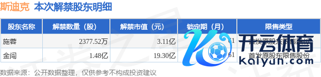 证券之星音问,左证商场公开信息整理,斯迪克(300806)于11月28日将有4030.45万股限售股份解禁,为公司首发原鼓励限售股份,占公司总股本8.89%。(本次数据左证历史公告整理得出,施行情况以上市公司最新公告为准)最近一年内,该股累计解禁1233.84万股,占总股本的2.72%。本次解禁后,公司还有1.34亿股限售股份,占总股本29.48%。具体如下图所示: