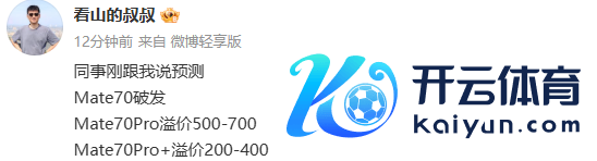 12月3日,有接近华为的数码博主发出预测,预测明日开售后,华为Mate 70圭臬版将会破发,而华为Mate 70 Pro溢价幅度在500元到700元,华为Mate 70 Pro溢价幅度在200元到400元。不外,这仅仅个东谈主预热,具体情况还得看12月4日的世界首销。