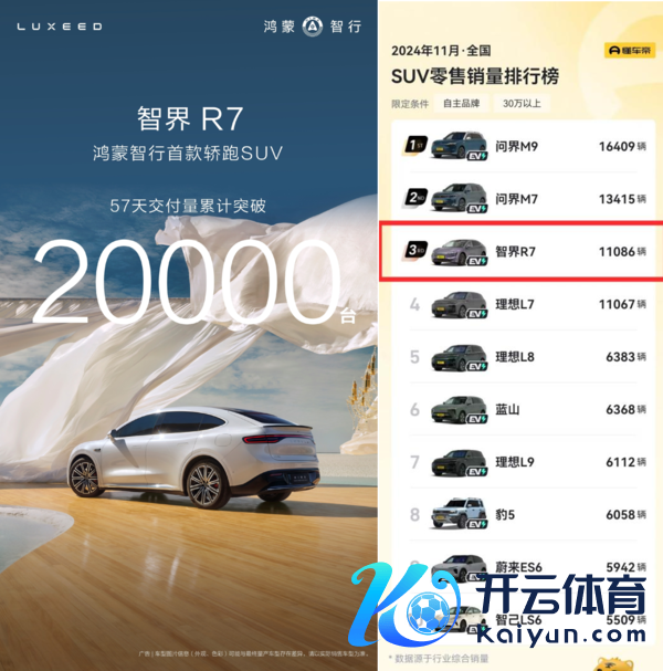 如今鸿蒙智行居品矩阵愈发细化,智界R7对准年青一代需求精确狙击,不仅是造型联想上荒谬稳妥皆市当下年青群体对个性化潮水前锋单品的追求,况兼有着高出致使杰出行业标杆的空间和实用性弘扬。而华为最新的智能科技皆将全量上车,更是让年青群体不错享受到业内最高出的智能科技体验。在刚刚驱散的11月中,智界R7纯电版获取了SUV零卖销售榜第三名的好收成,增程版的推出将为智界R7 车系注入更宏大的力量,快活消耗者更丰富的用车场景需求,改日增程+纯电双车将变成协力,打造双料爆款,不竭横扫中大型商场。