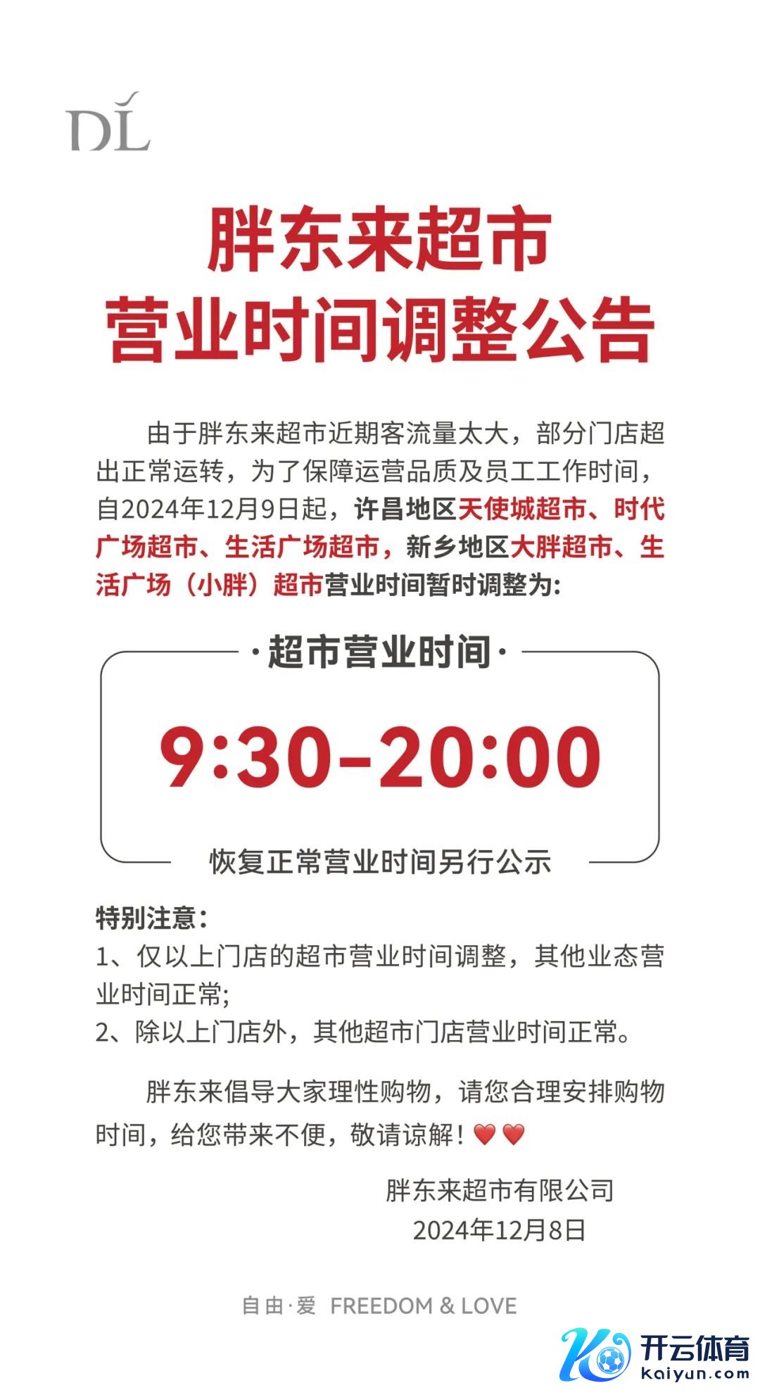 据胖东来官方公众号音讯,胖东来超市自有品牌部分商品调度为同城线上限购销售,凭会员账号每周每个单品按照限购数目购买一次。见知称为了让顾主有序的购物,保险卖场安全,自2025年1月1日起,许昌地区金三角店、北海店、金汇店、云鼎店、东说念主民店、禹州店,新乡地区大胖店、小胖店以下商品调度为同城线上限购销售,其他门店暂停销售。