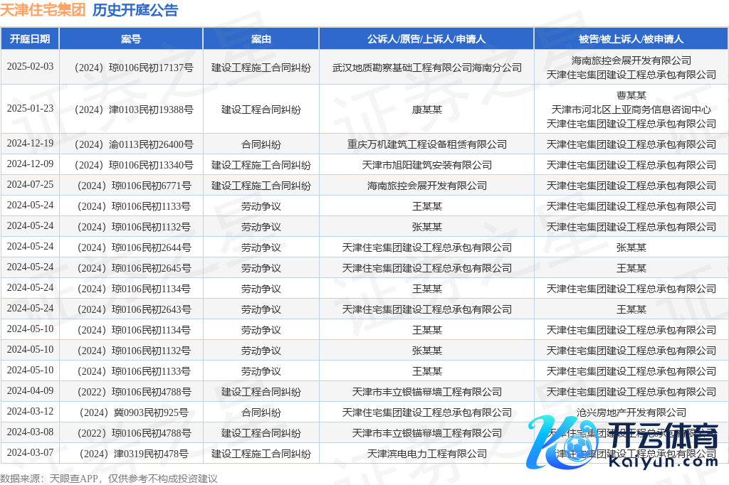 本站讯息,说明天眼查APP表露,近日公布了一则天津住宅集团开采工程总承包有限公司手脚被告/被上诉东谈主的开庭公告,详备现实如下: