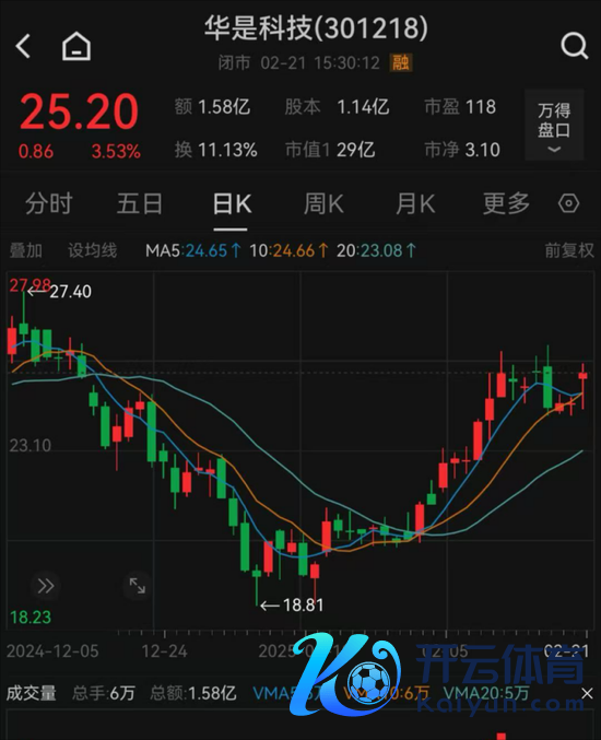 落拓2月21日收盘,华是科技每股报25.2元,最新市值为29亿元。