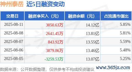 本站音尘,8月11日,神州泰岳(300002)融资买入1.26亿元,融资偿还9552.33万元,融资净买入3050.63万元,融资余额14.12亿元,近3个走动日已连气儿净买入累计6536.0万元,近20个走动日中有13个走动日出现融资净买入。