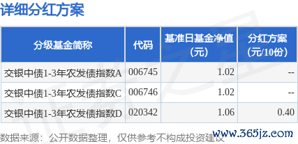 本站音信,6月23日发布《交银施罗德基金解决有限公司对于交银施罗德中债1-3年农刊行债券指数证券投资基金分成公告》。本次分成为2025年度的第1次分成。公告清楚,本次分成的收益分拨基准日为6月6日,详备分成决策如下: