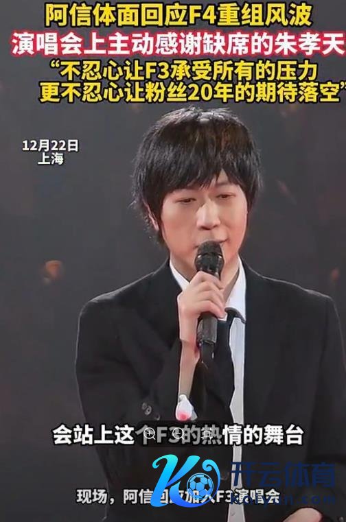 当" F3 "言承旭、周渝民、吴建豪在"恒星之城"上海站的舞台上收割情感与掌声时,缺席的朱孝天却以一己之力,将这场怀旧盛宴拖入了公论的旋涡中心。12 月 22 日演唱会现场,临时"补位"的五月天阿信不测摔下舞台仍坚执扮演,并在临了动情感谢未能赴约的朱孝天,称"会比及无缺威望"。可是,这番关爱场合次日便碰到朱孝天的冷硬回击,他直指阿信的感谢是"场合话",并爆出合作闹翻、行业黑幕等一系列惊东说念主内情,让" F4 重组"的童话叙事透顶崩解。