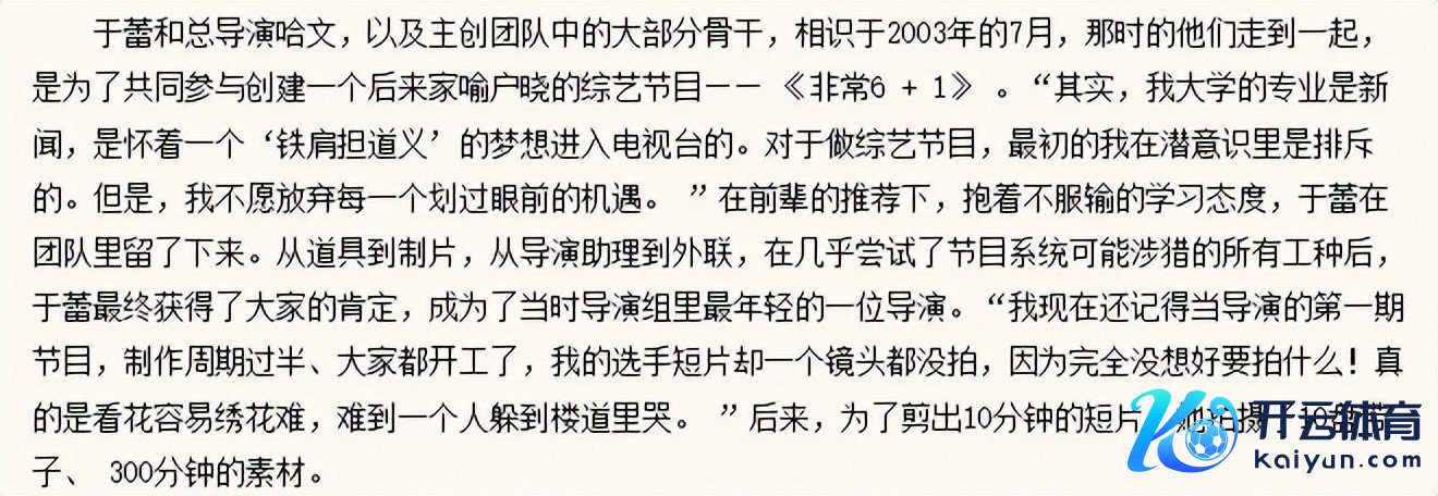 凭借锐利感知力与高效推论力,2003年她便被《非常6+1》制作团队破格吸纳,成为哈文麾下年青的节目制作主谈主之一。