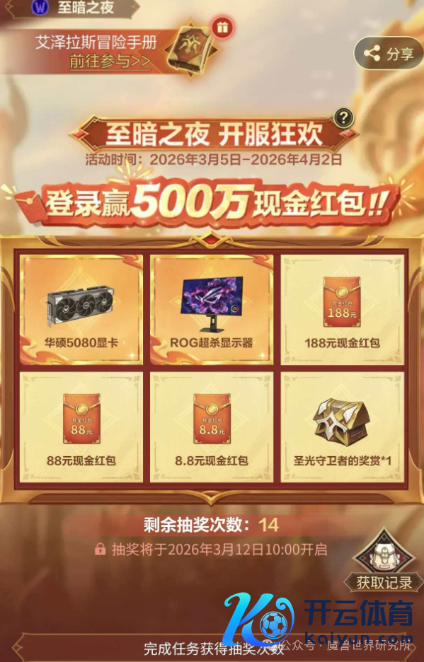今天是3月12日体育游戏app平台,500万现款奖励抽奖通说念于10:00认真开启!