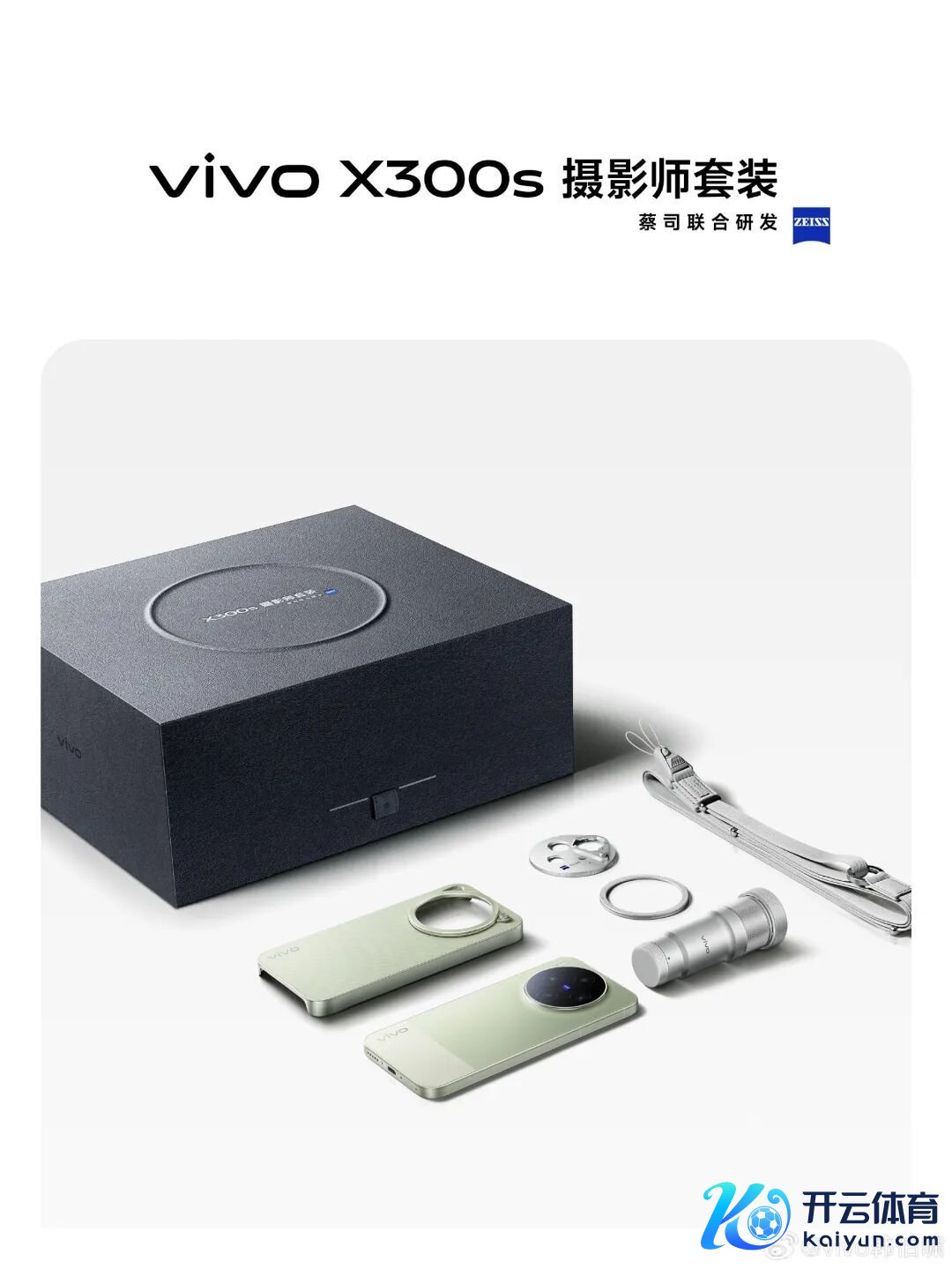 vivo X300s 的影像套装因为定位不通常,就比拟偏向直快出片,包含口红 200 增距镜、定制手机壳及照相师肩带。