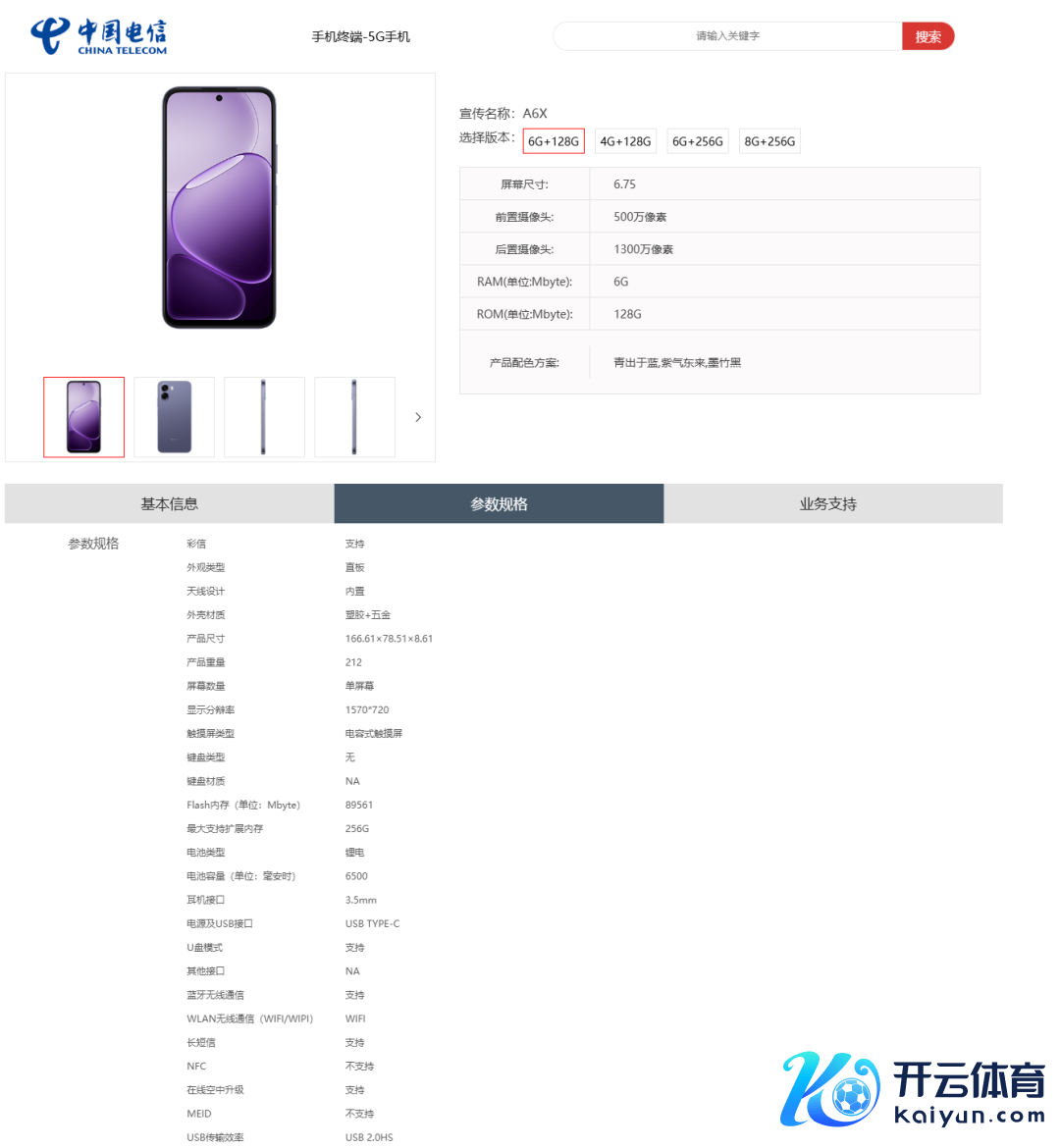 OPPO A6X 上架电信末端家具库,型号 PLT140,6.75 英寸 1570 × 720 挖孔屏,6500mAh 电板,略胜一筹、怀金拖紫、墨竹黑三款配色,4+128GB、6+128GB、6+256GB、8+256GB 四个存储版块,保留 3.5mm 耳机接口。