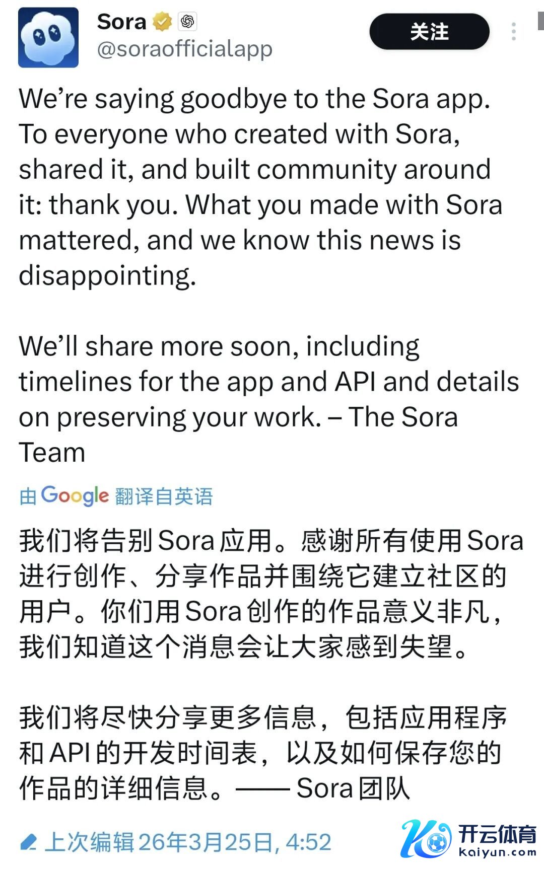 OpenAI 文告关闭 Sora
